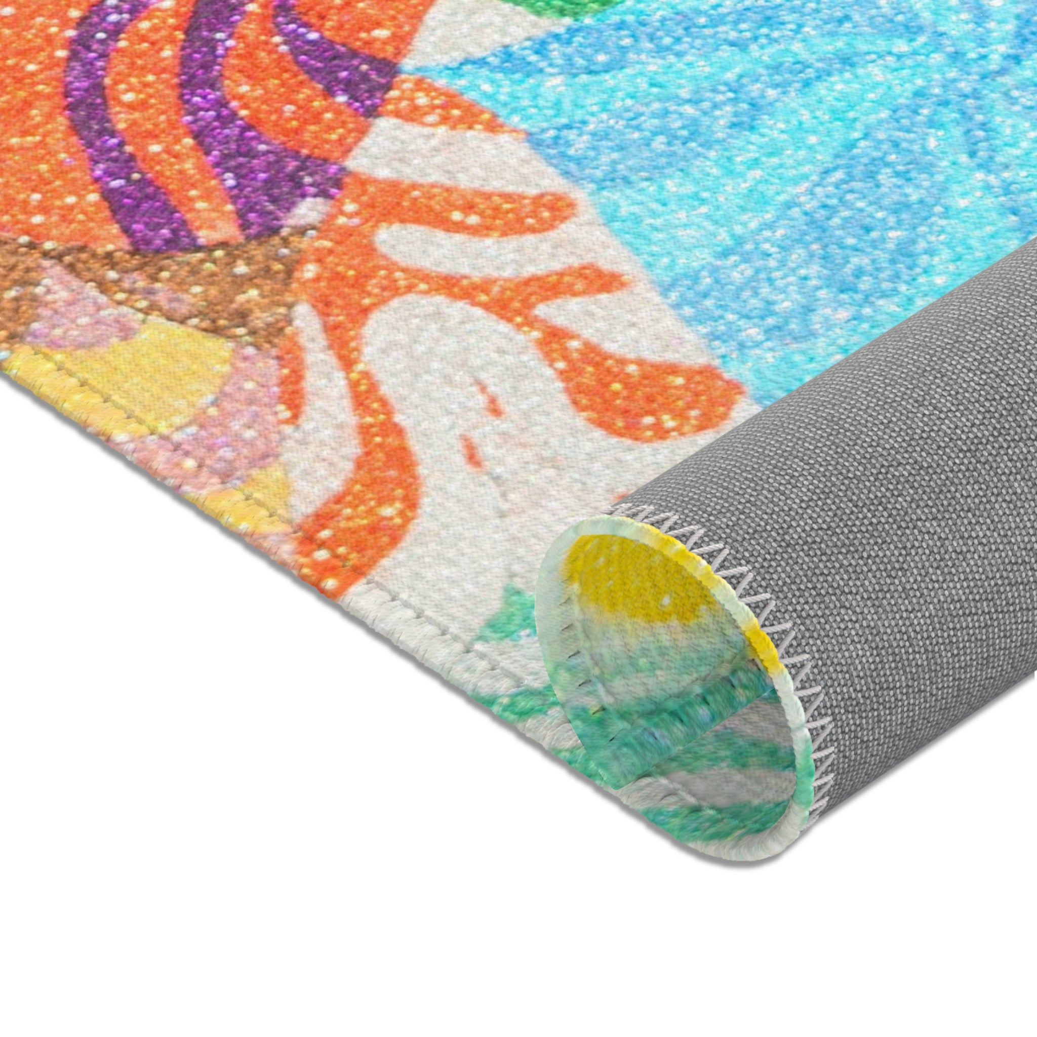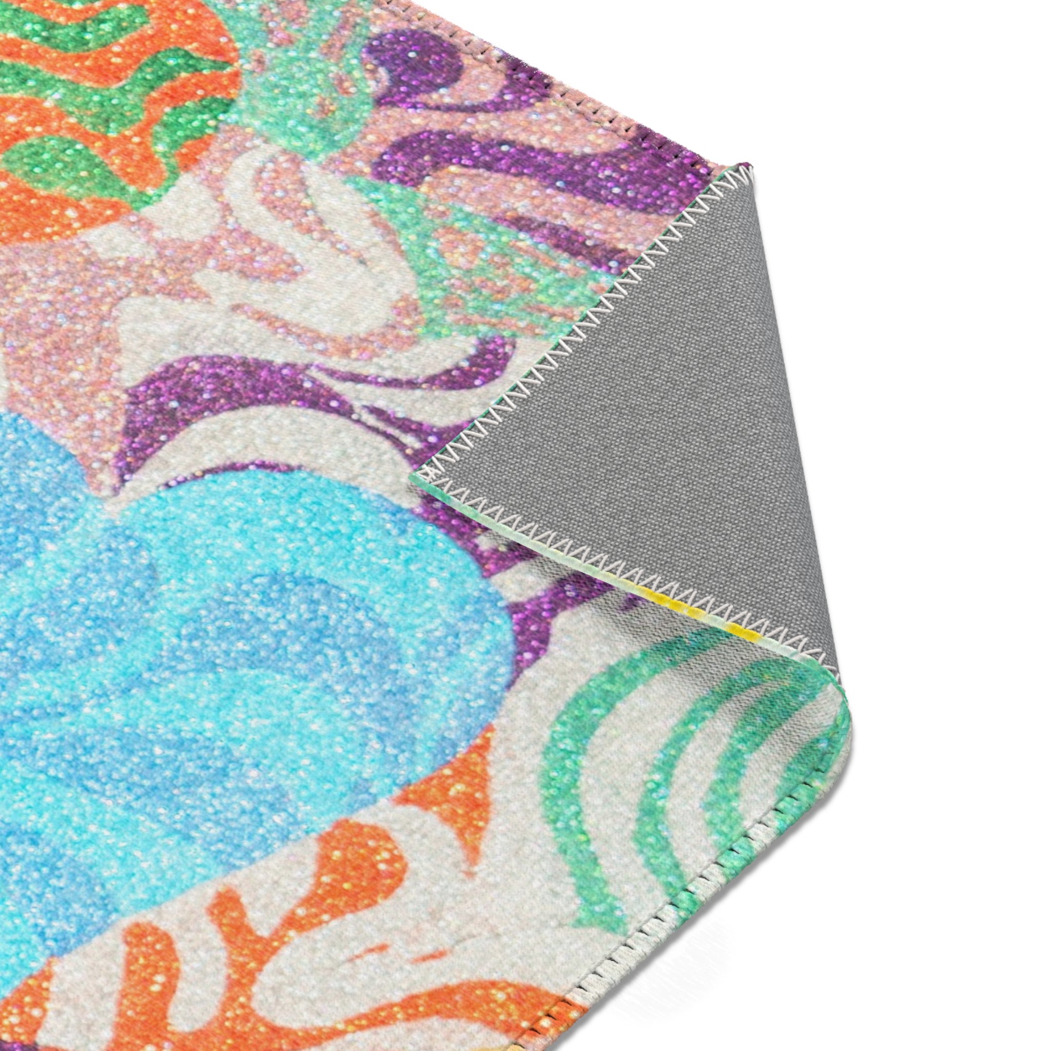 This durable area rug will surely make a style statement in any room. Add playful, colorful or stylish graphics to effortlessly match your aesthetics. This area rug features hemmed edges and a coated backing, ready for any flat-lay design.