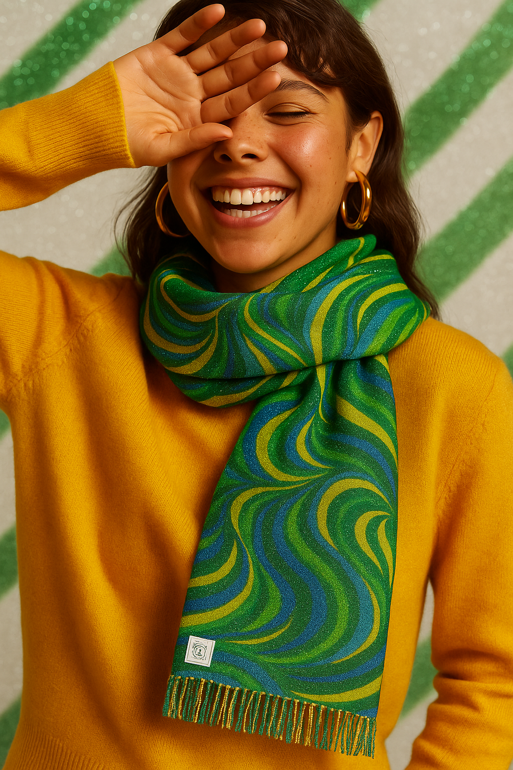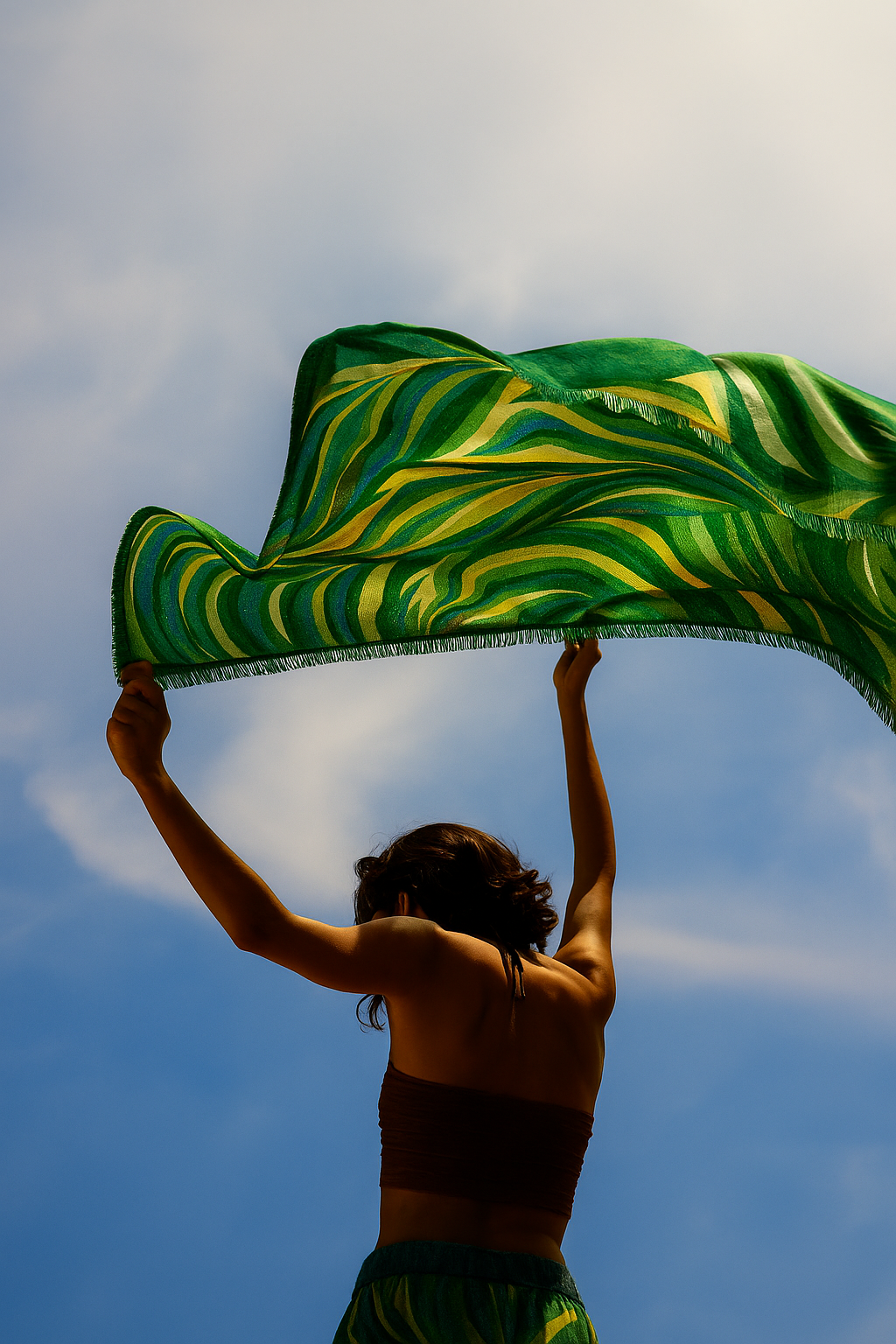 A vibrant and timeless accessory that adds movement and detail to any outfit. This light scarf in green and yellow is perfect for all seasons and seamlessly integrates into your wardrobe. Relevant for fashion-forward individuals looking to add an exotic touch to their look.