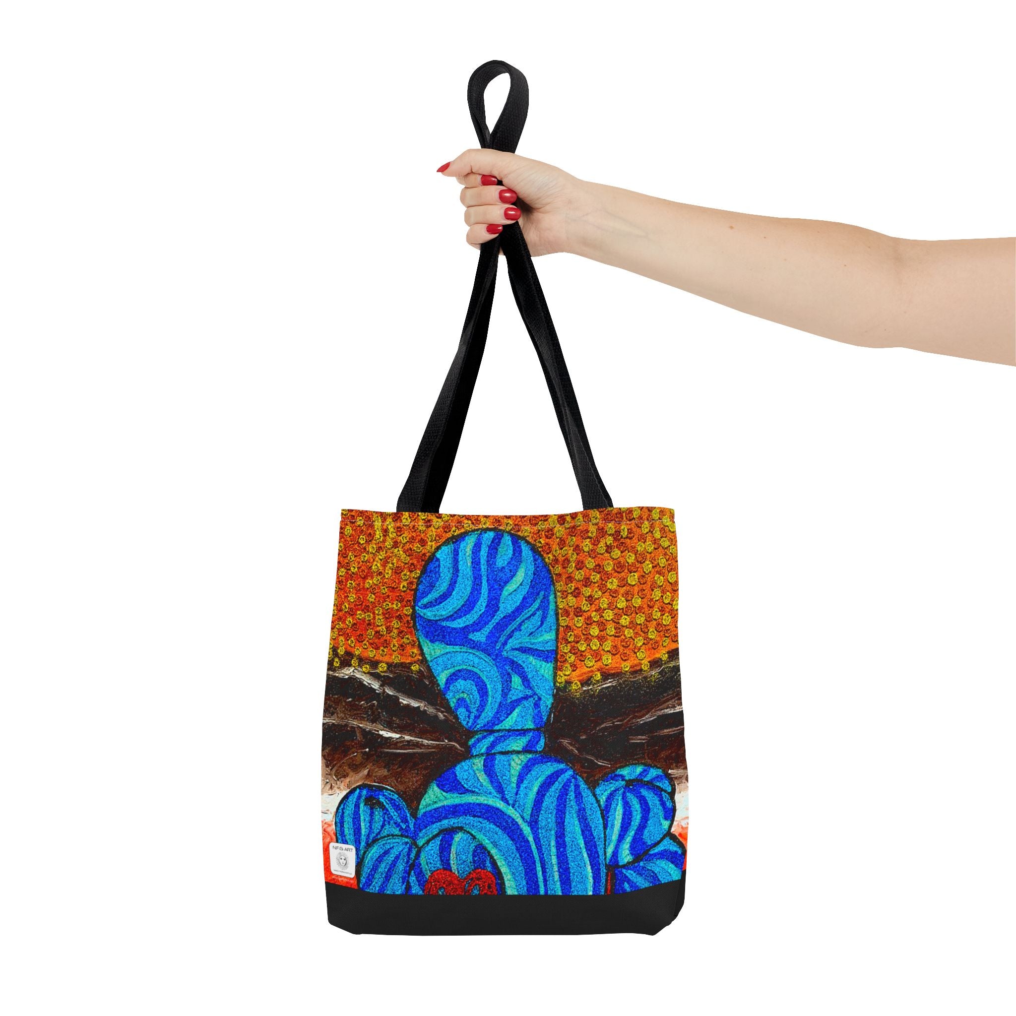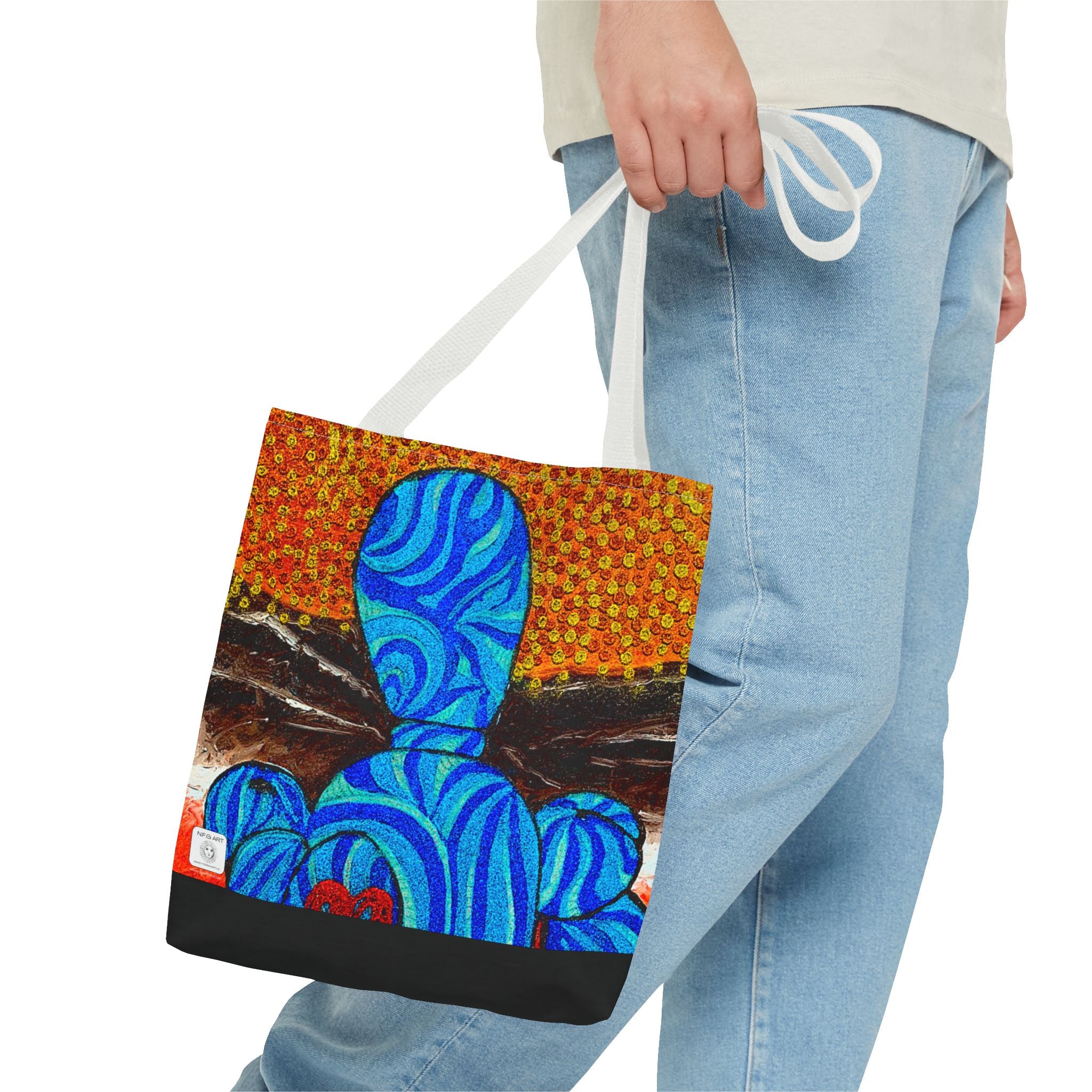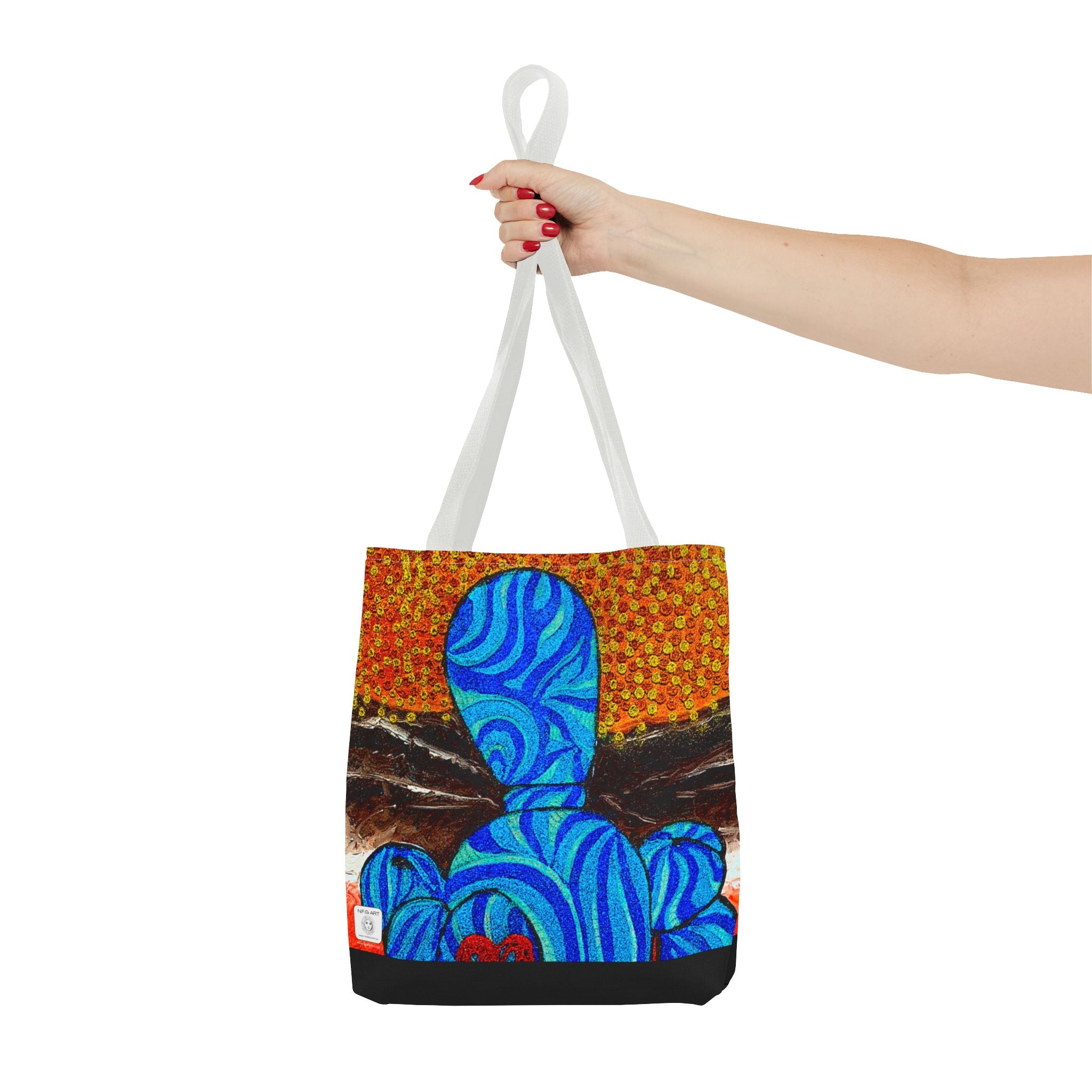 Available in 3 sizes to add both functionality and style, these custom-printed tote bags come with multiple handle colors to match your designs. Made with spun polyester, these bags feature double-stitched seams, cotton webbing straps, and nonwoven laminate lining for high-end durability. Your all-over print is created with dye sublimation for high-end visuals.